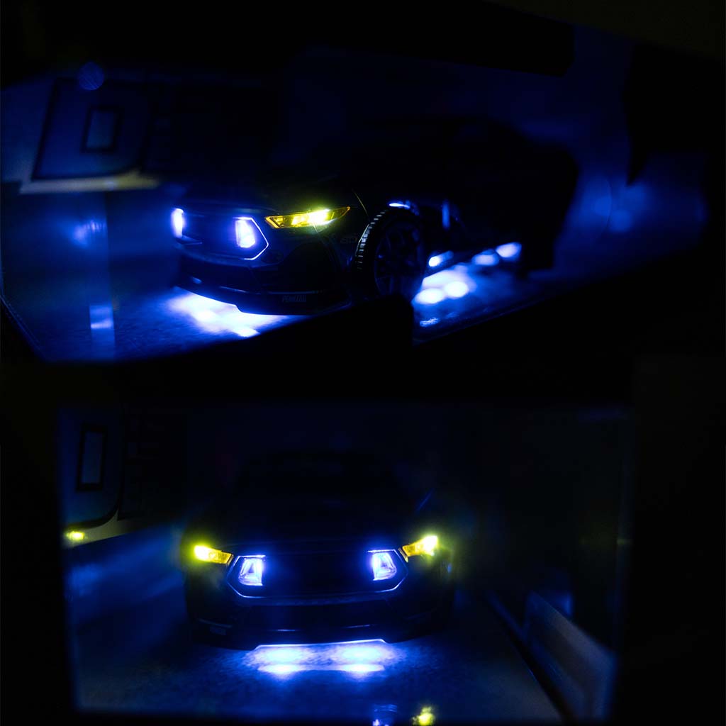 This model is designed with James Deane's 2025 Formula Drift livery and features real rubber tires, an intricately detailed interior and exterior, and functional components including opening hood and doors with premium lighting along the bottom of the model. Crafted from diecast metal, it offers a durable and premium feel, making it an ideal display piece in your office or garage.