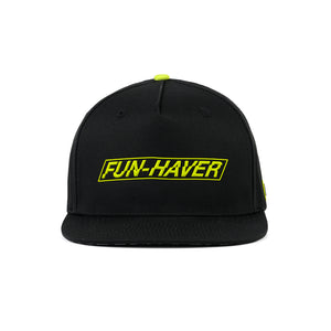 Fun-Haver®'s Bolt Snapback Hat blends classic style with that unmistakable Fun-Haver® style! This black trucker hat features simple, yet bold embroidered Fun-Haver logos, with a slick Bolt pattern that lines the brim.
