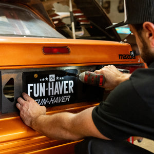 Buckle up and blast your fun-loving style with the Fun-Haver® Metal License Plates! These jet-black metal license plates with contrasting white Fun-Haver® or Full-Time Fun-Haver® logo scream, FUN! The bold white Fun-Haver logos pop against the sleek, matte-black finish, turning heads and sparking smiles wherever you cruise. Made from heavy-duty, weather-proof aluminum, these plate looks great in any weather, day or night!