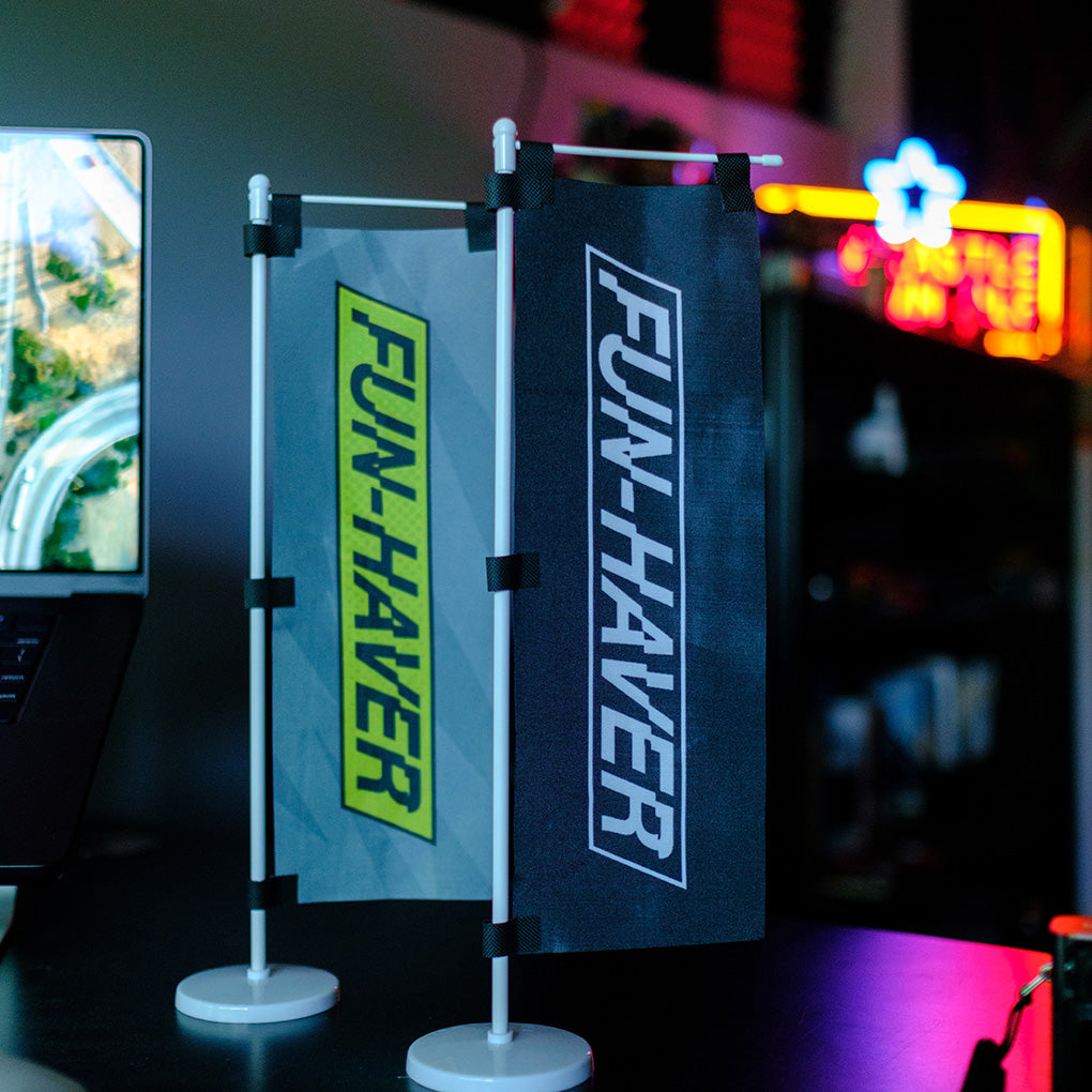 Adding a fun twist to the traditional Nobori Flag with the new Fun-Haver Nobori Desk Flag! These flags are the perfect addition to your desk or toolbox! Available in black or grey, can be hung vertically with included base or horizontally.