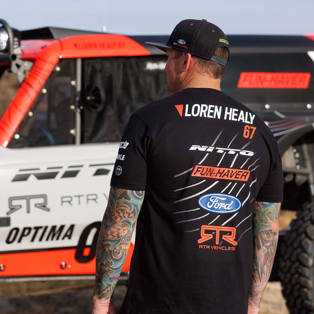 Experience the bold and unique style of Loren Healy's 2025 Ultra4 livery with this official RTR Vehicles Off-Road Team Shirt. Made from 100% ringspun cotton at 5.9 oz. (200 GSM), this tee is designed for comfort and durability, whether you're racing, hitting the trails, or just going about your day. The side-seamed construction, double-needle top stitching, and pre-shrunk fabric ensure a perfect fit that's ready for any adventure - just like Loren's Ultra4 trucks!